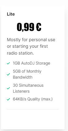 Try it free without obligation for a month. No contracts or credit card needed. It doesn't matter if this is your first online radio station, or if you have an established name, our pricing is simple, transparent and tailored to your needs. Save 20% when you pay for a year.